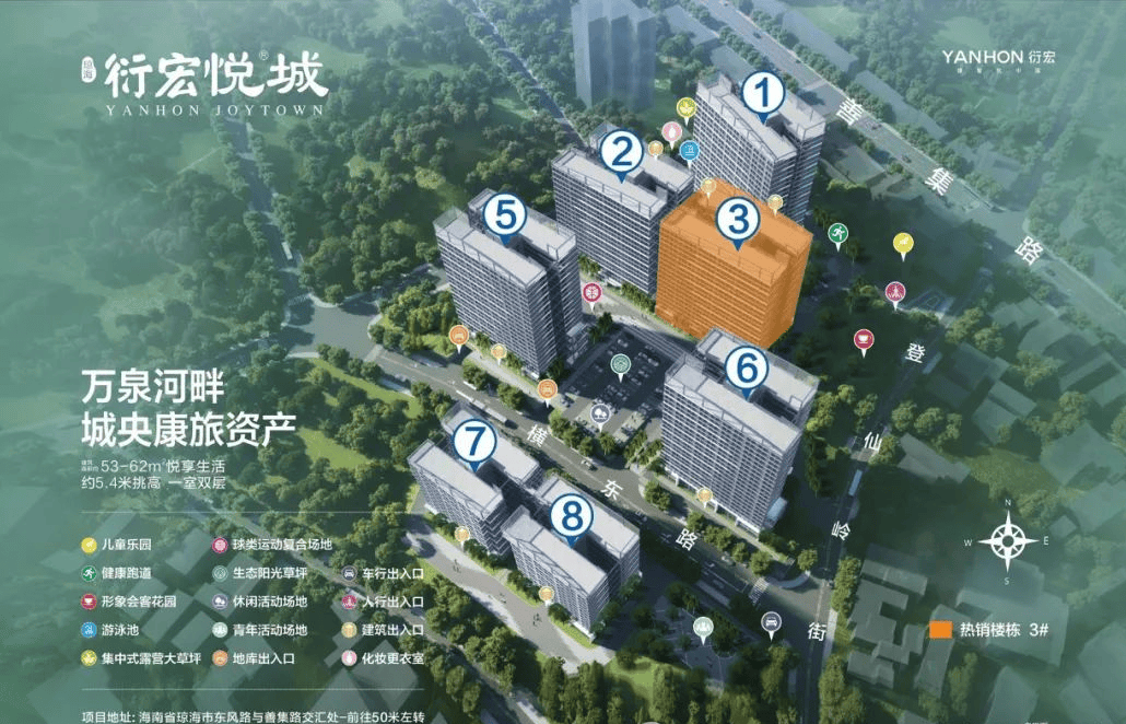 衍宏向东•再造悦城,衍宏悦城是衍宏集团实力打造的琼海市首作项目,择址自贸东琼海市中心,占地3.5万㎡,总建筑面积约7.1万㎡,全龄化康旅社区,项目设有七大业主室内主题活动中心、八大业主户外主题活动设施配套。
