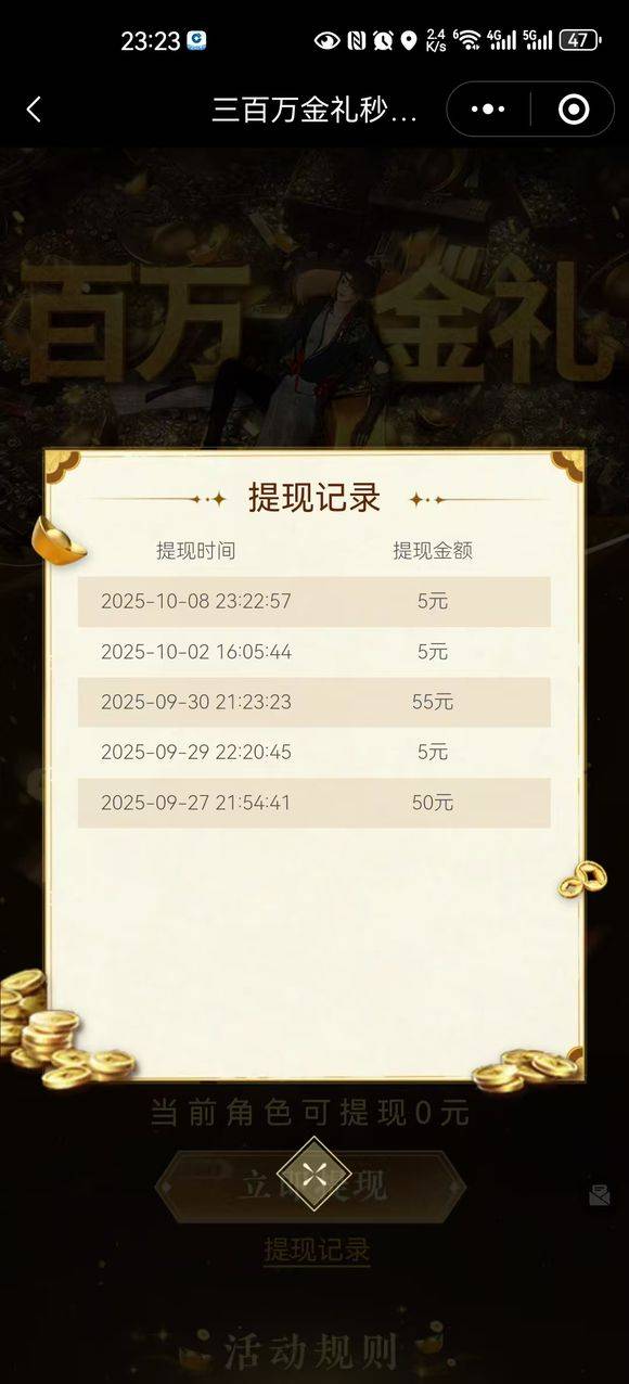 “凤凰服”开服后,所有入驻玩家在体验游戏玩法的过程中,都有机会获得可直接提现的“金条”,单根“金条”金额在5元至50元之间。从官方的发放力度来看,几乎所有玩家入驻后都能获得“金条”,国庆长假期间,甚至有玩家累计获得了120余根。