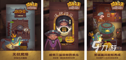 将三国作为背景,但却使用了咸鱼的卡通形象,这一款趣味放置类型的游戏,就可以通过挂机战斗去推进关卡,并且还有很多荒诞的小游戏。魔性的画风真的很搞笑,这和传统的三国游戏严肃风格是截然不同的,很解压,而且也很有趣。策略性全部都会藏在阵容的搭配里面,看上去有一些休闲,在优化阵容时也能迅速的提升战斗力。